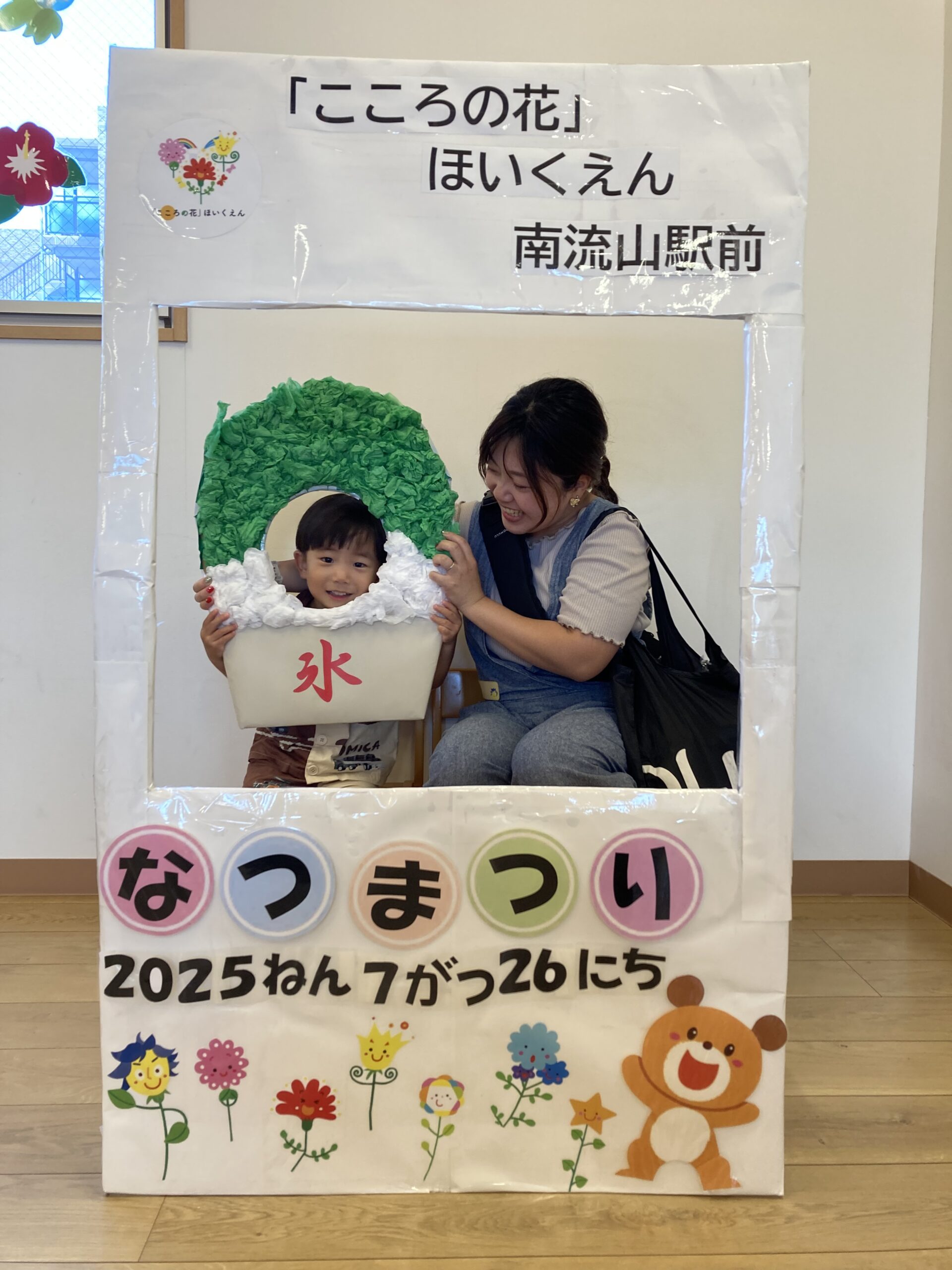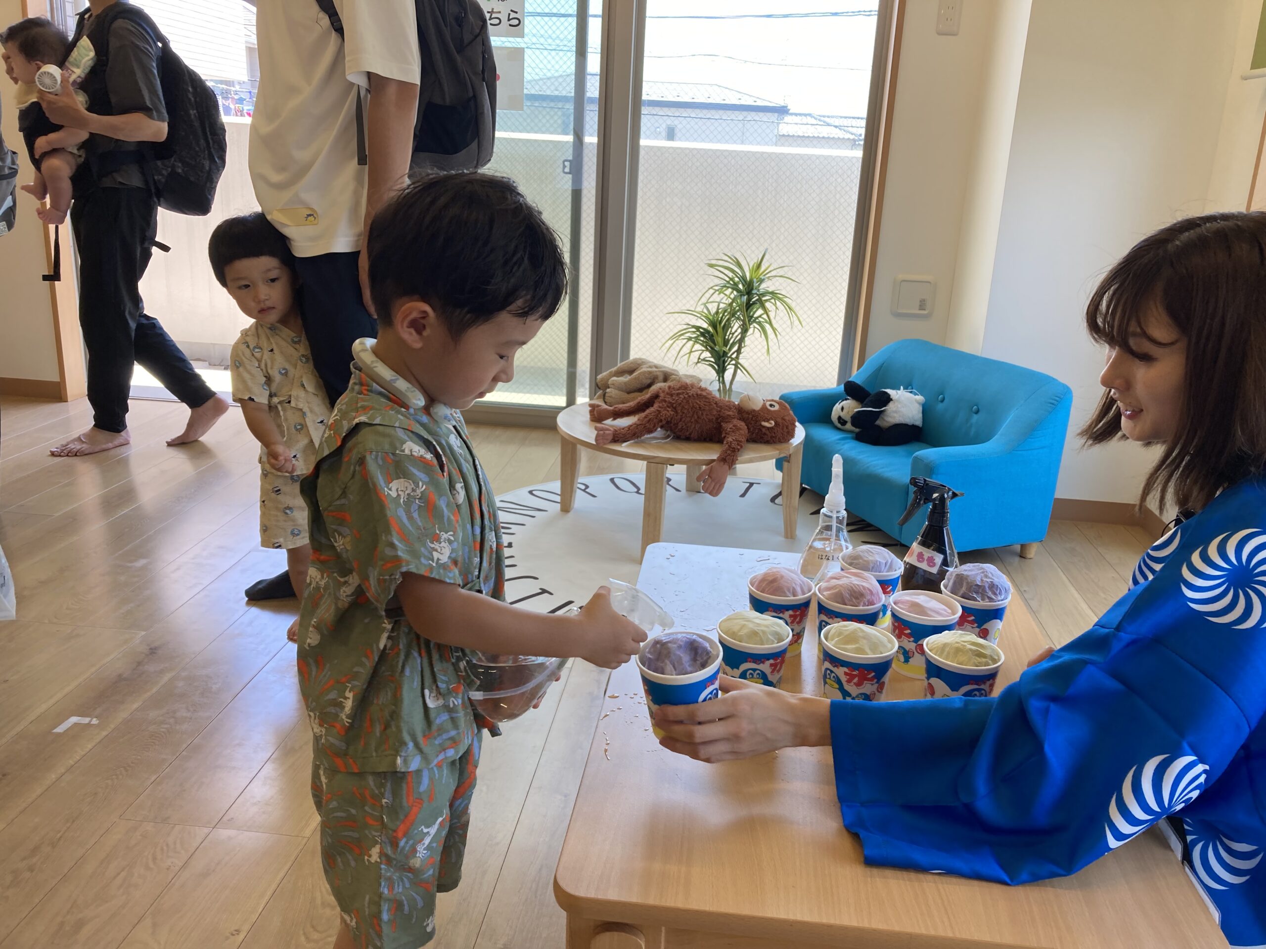 食べ物コーナーに遊びコーナー、盆踊りなどたくさんのブースを用意しました。お父さんお母さんやお友だちと夏祭りを楽しむ様子がありました👀
