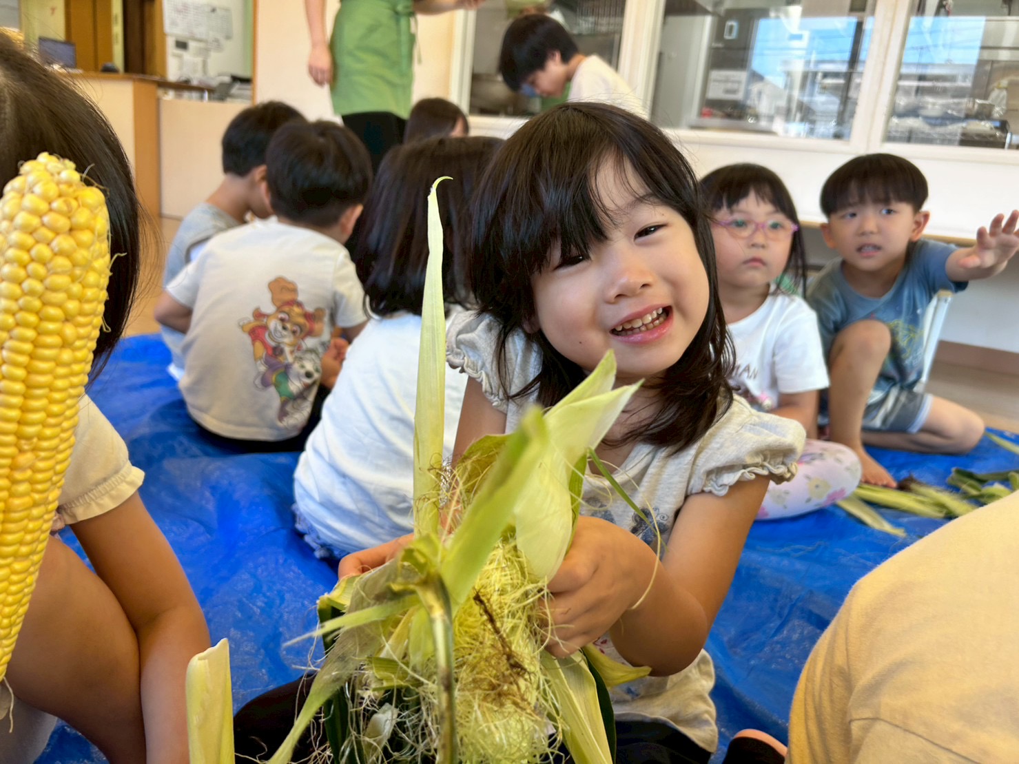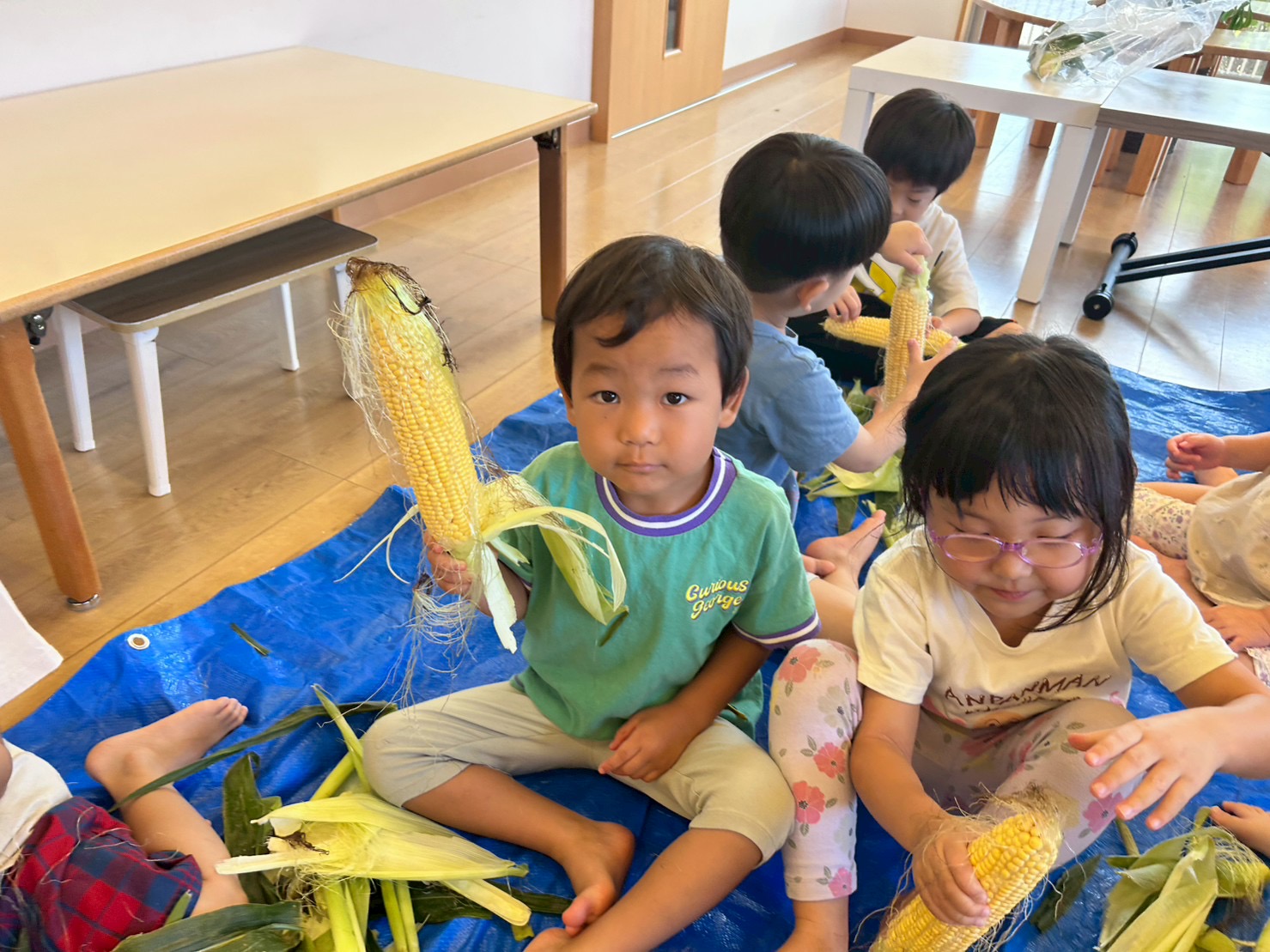 はな4くみはとうもろこしの皮むきをしました!