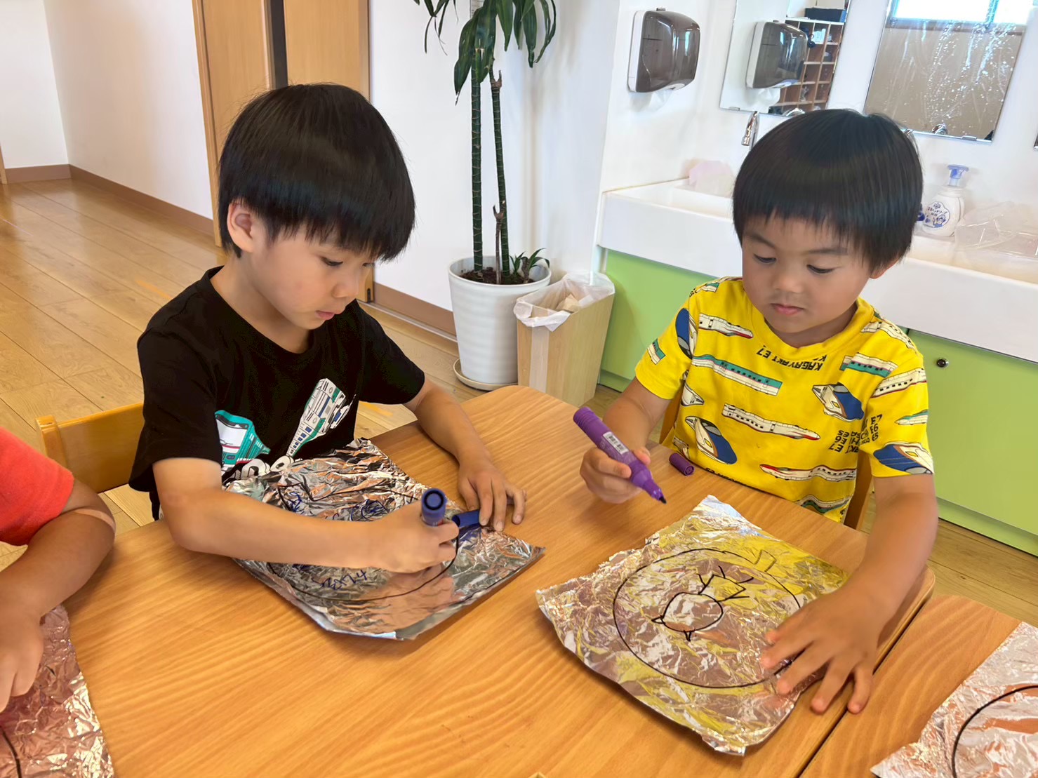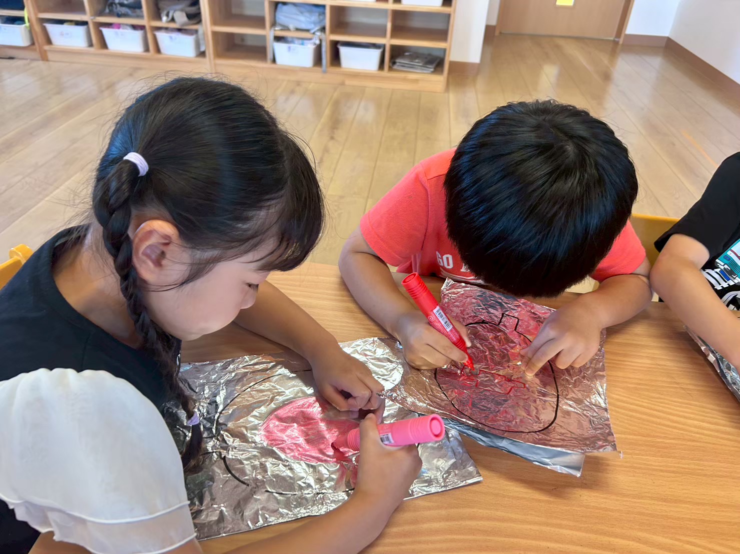 アルミホイルを重ねて切ることが面白くも難しかったとのことですが、ちゃんと膨らんでびっくりしていました。