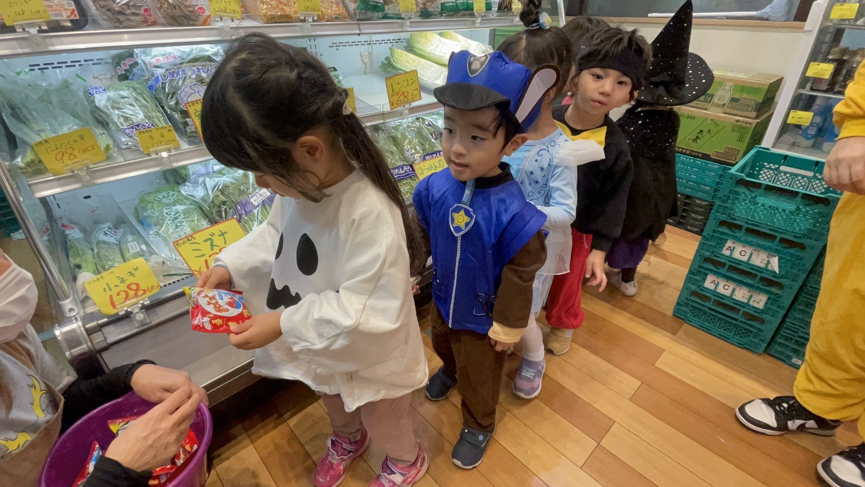 パネルシアターやダンスを楽しんだ後は、園周辺の施設に行ってお菓子をもらいに行きましたよ🍪